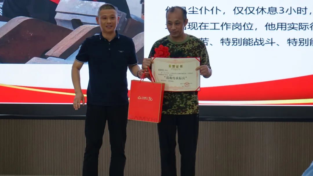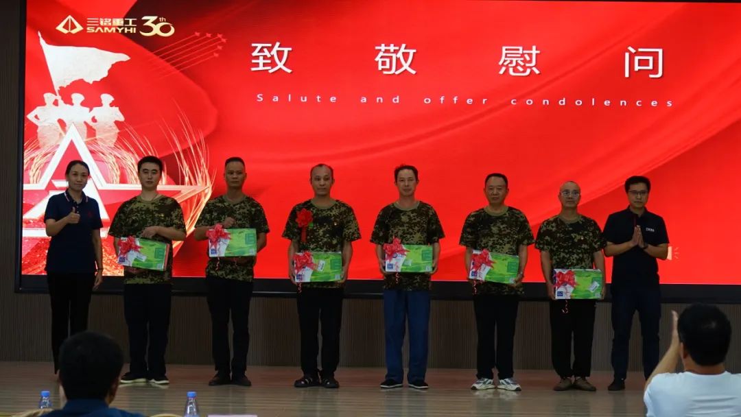 在莊嚴的《英雄贊歌》旋律中,公司為退伍軍人舉行了隆重的榮譽證書頒發儀式。當這些曾為國防事業奉獻青春的同志接過紀念品時,老兵們用軍禮致意,挺拔的身姿與堅毅的目光,彰顯永不褪色的軍人本色。這一刻,軍人的忠誠擔當與企業的責任使命交相輝映,共同譜寫了一曲新時代的奮斗贊歌。在場每一位同仁都深切感受到,這種精神的傳承必將轉化為推動企業高質量發展的強大動力。