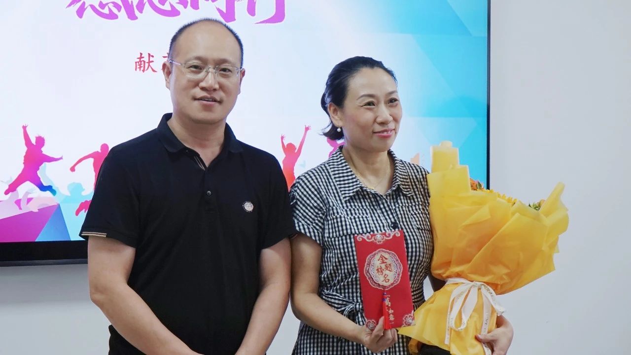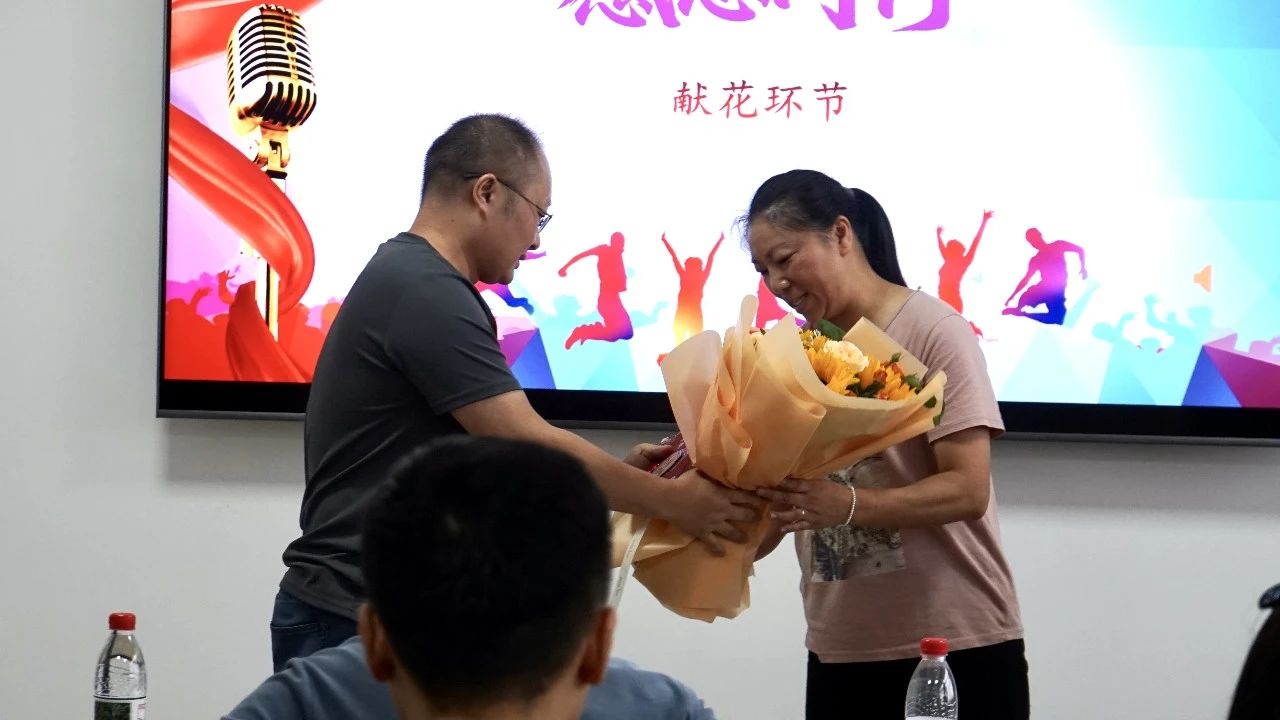 隨后公司領導為兩位優秀員工獻上鮮花,感謝他們為企業、為家庭的辛勤付出,并強調“成長比成功更重要,品格比分數更珍貴”,贏得現場陣陣掌聲。