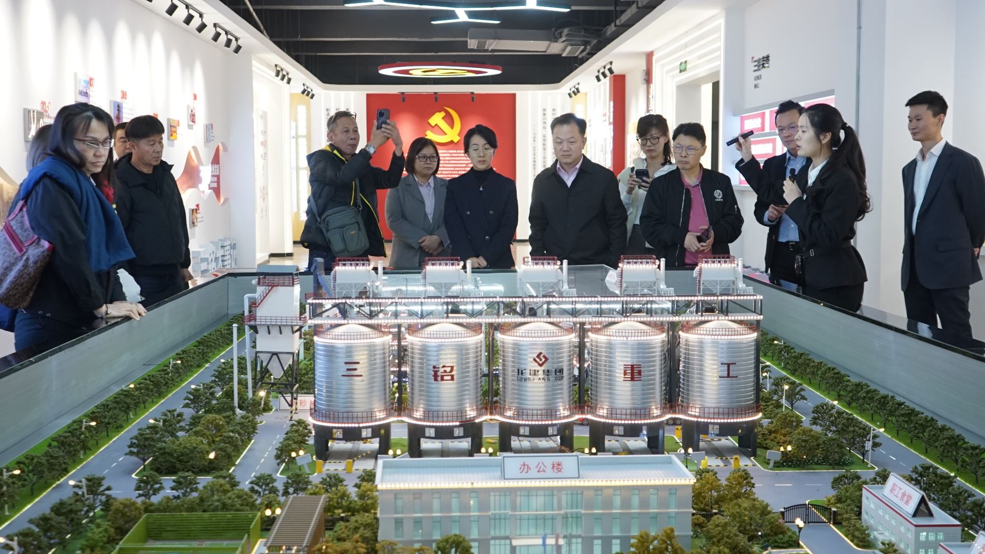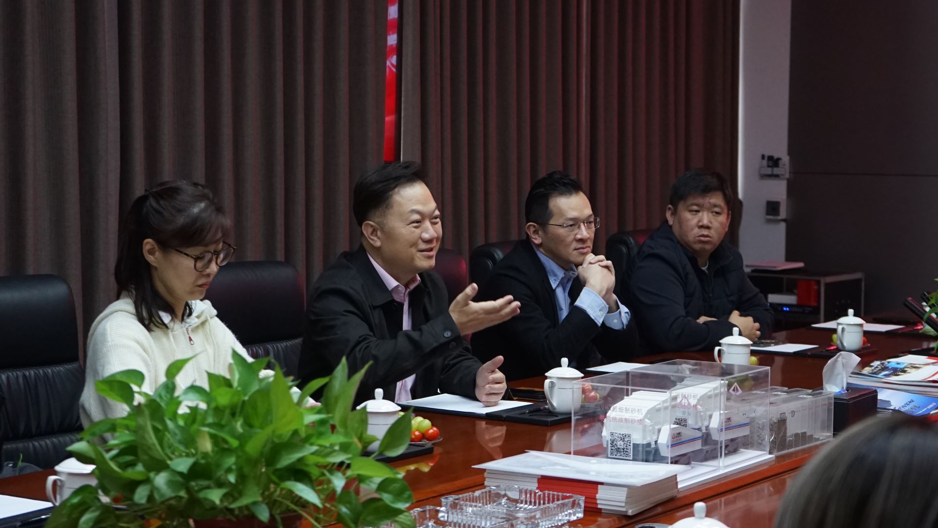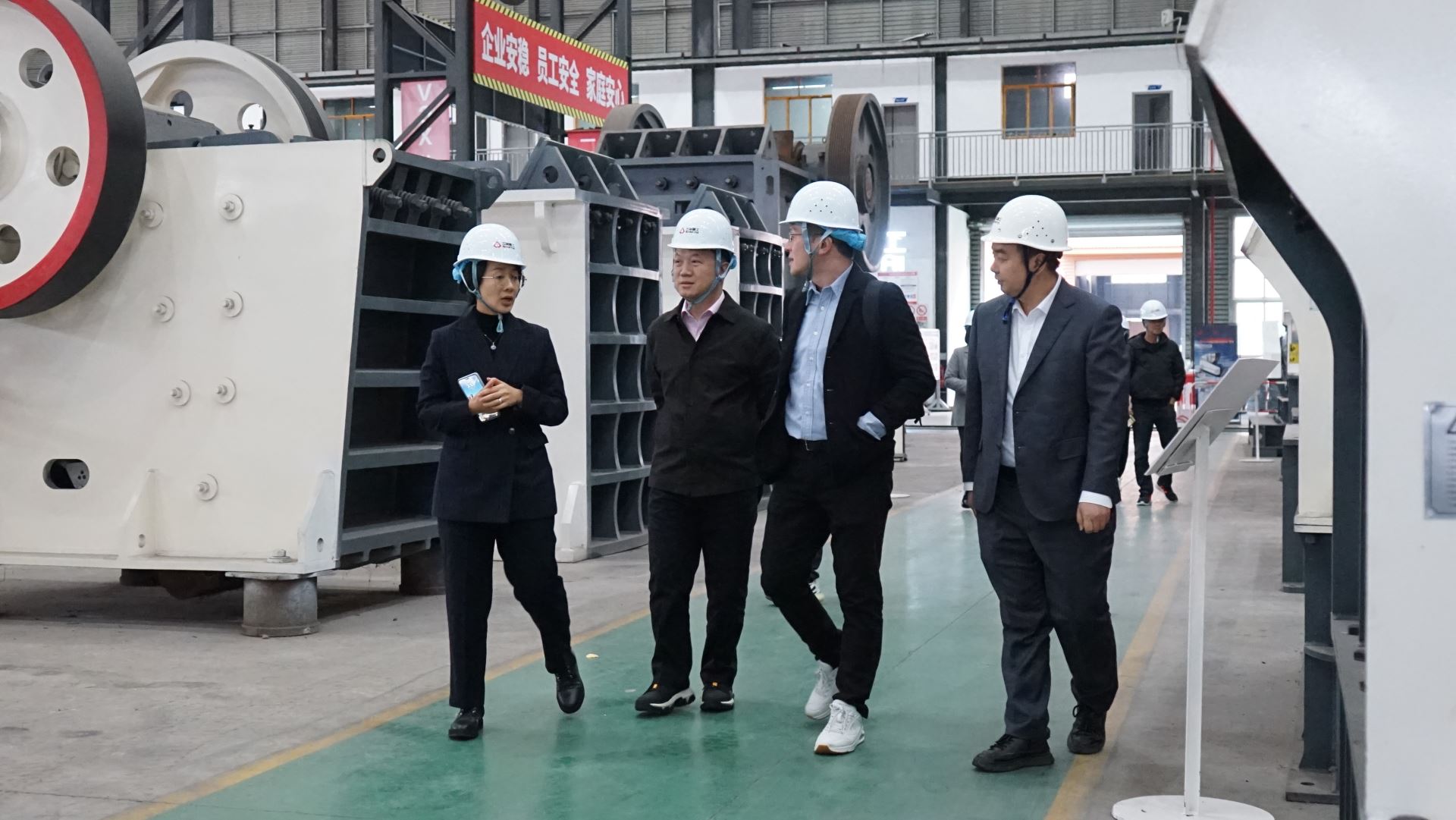 新加坡砂石協會代表團首先參觀了三銘重工的企業展廳。展廳內,代表團了解了三銘重工的發展歷程、企業文化、技術研發體系以及在砂石裝備制造領域取得的創新成果。對三銘重工在智能化、綠色化礦山機械設備方面展現出的技術實力表示高度贊賞。