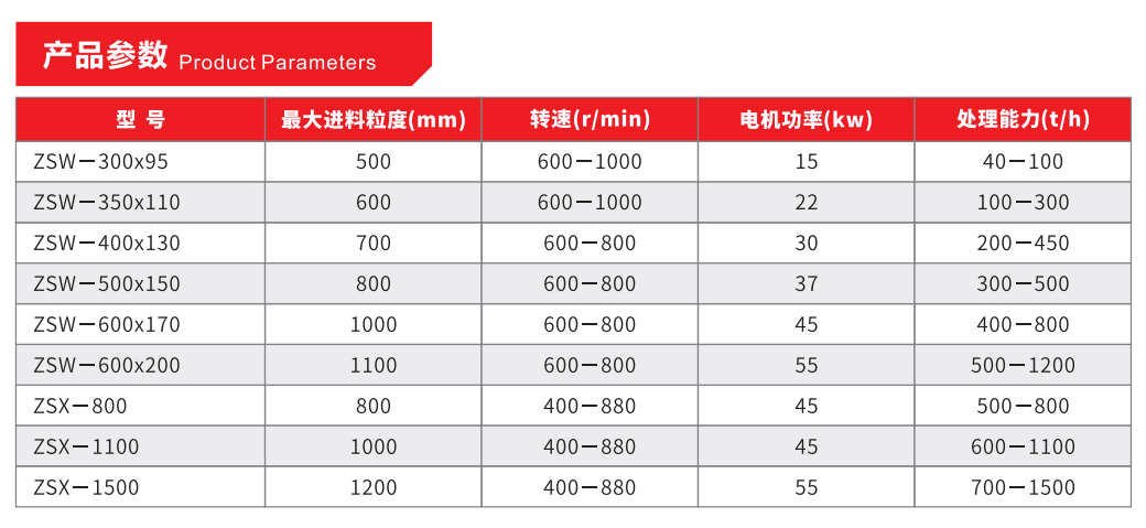 1.梯級棒條落差大,且棒條設計成大小頭結構,不易堵料,下料快,具體良好的預篩分效果;