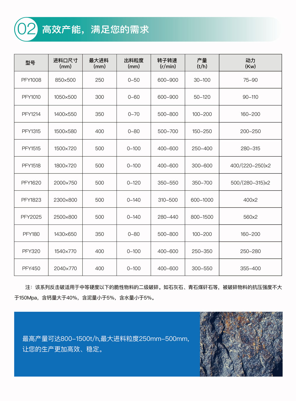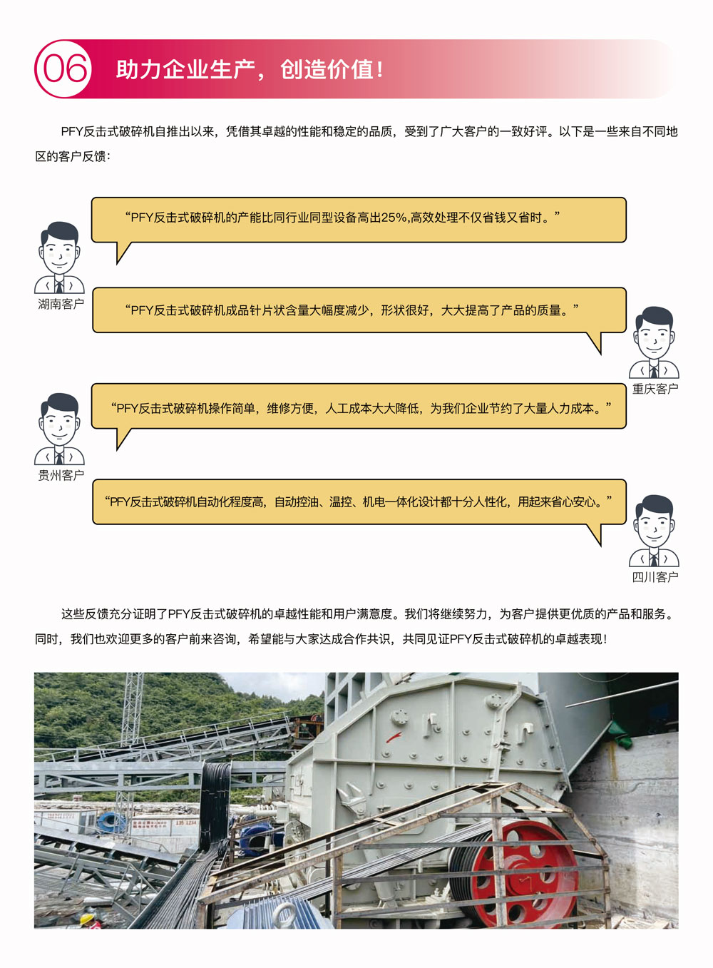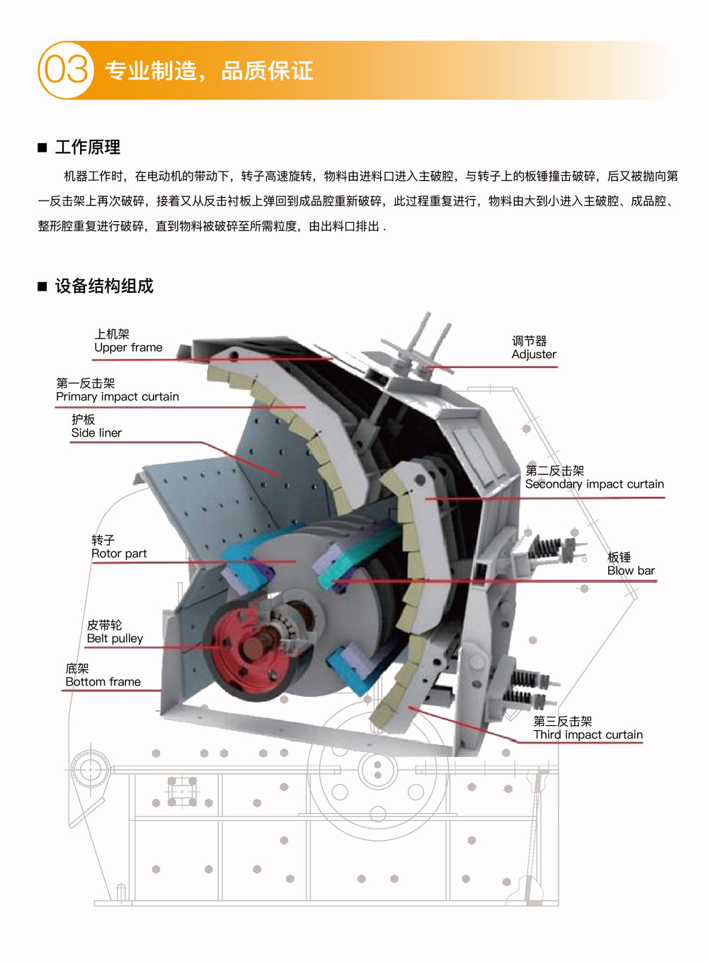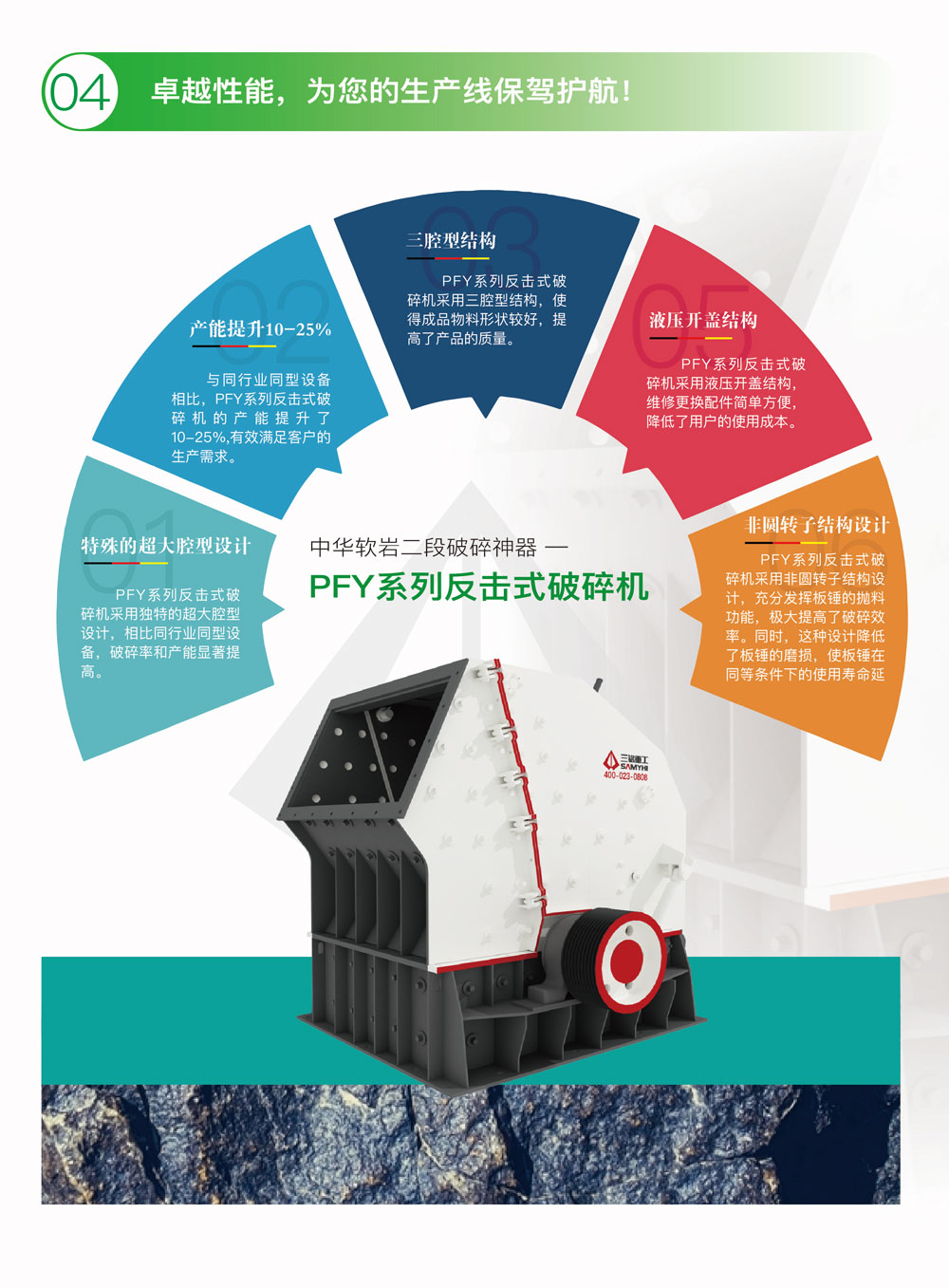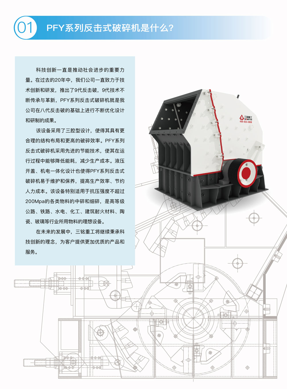 本系列產(chǎn)品是我司優(yōu)化設(shè)計(jì)而研制出的一款三腔型反擊式破碎機(jī),具備結(jié)構(gòu)合理、破碎比大、產(chǎn)量高、能耗低、維修方便等特點(diǎn),特別適用于抗壓強(qiáng)度不超過250Mpa的各類物料的中碎和細(xì)碎,是高等級(jí)公路、鐵路、水電、化工、建筑耐火材料、陶瓷、玻璃等行業(yè)所用物料的理想設(shè)備。